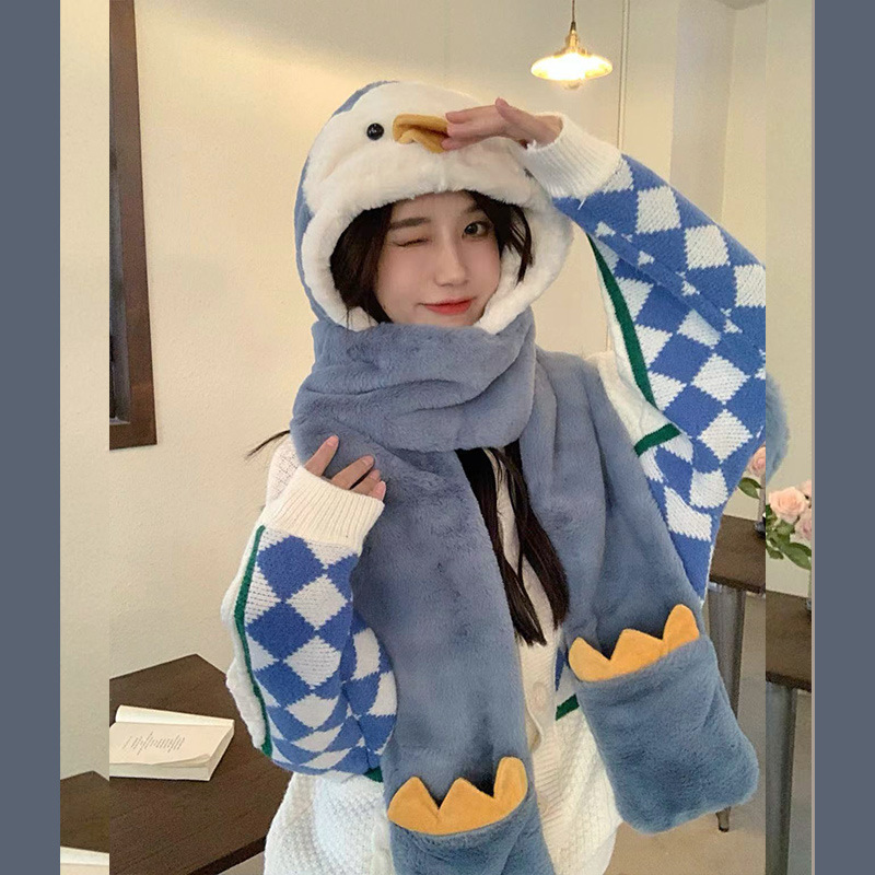 秋冬韩版可爱小熊耳朵围巾帽子一体三件套加厚护耳保暖帽雷锋帽女