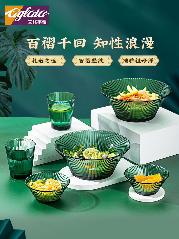艾格莱雅百褶玻璃餐具网红ins北欧水杯饭碗沙拉碗面碗果盘套装