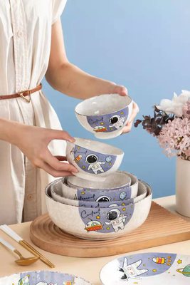 太空人卡通陶瓷雪花釉餐具碗盘米饭碗菜盘家用陶瓷餐具