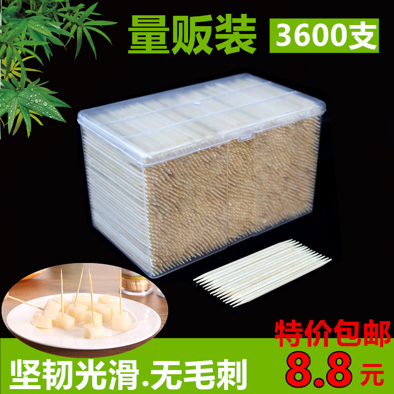 一次性牙签量贩装散装结婚酒店家用双头尖3600支盒装水果肉串牙签