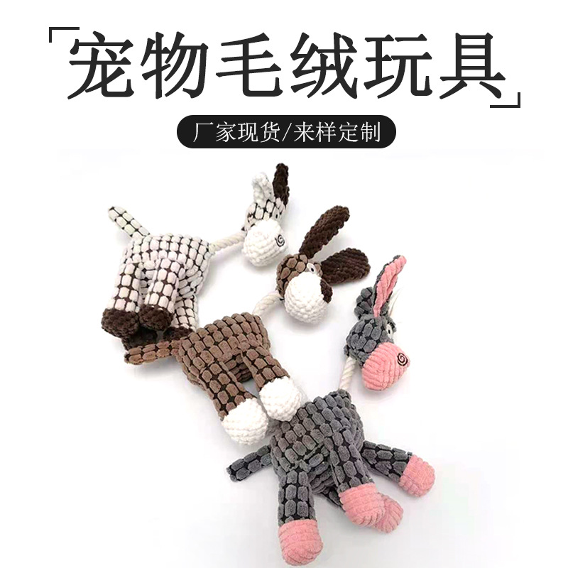 亚马逊宠物发声狗狗棉绳磨牙耐咬玩具绳狗玩具 毛绒发声互动玩具