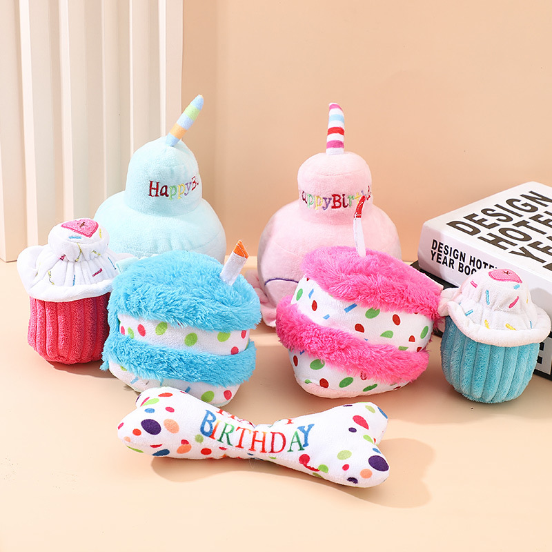 狗狗毛绒玩具耐咬磨牙发声生日系列毛绒蛋糕宠物用品