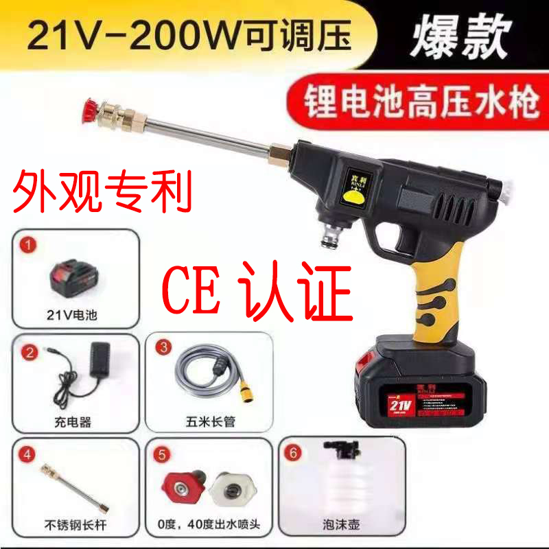 高压水枪锂电池洗车水枪便携式锂电池无级变速无级调压专利产品