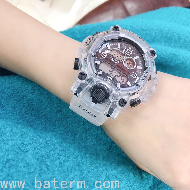 原宿风潮流大表盘青少年运动电子表 透明表带彩色壳夜光学生手表