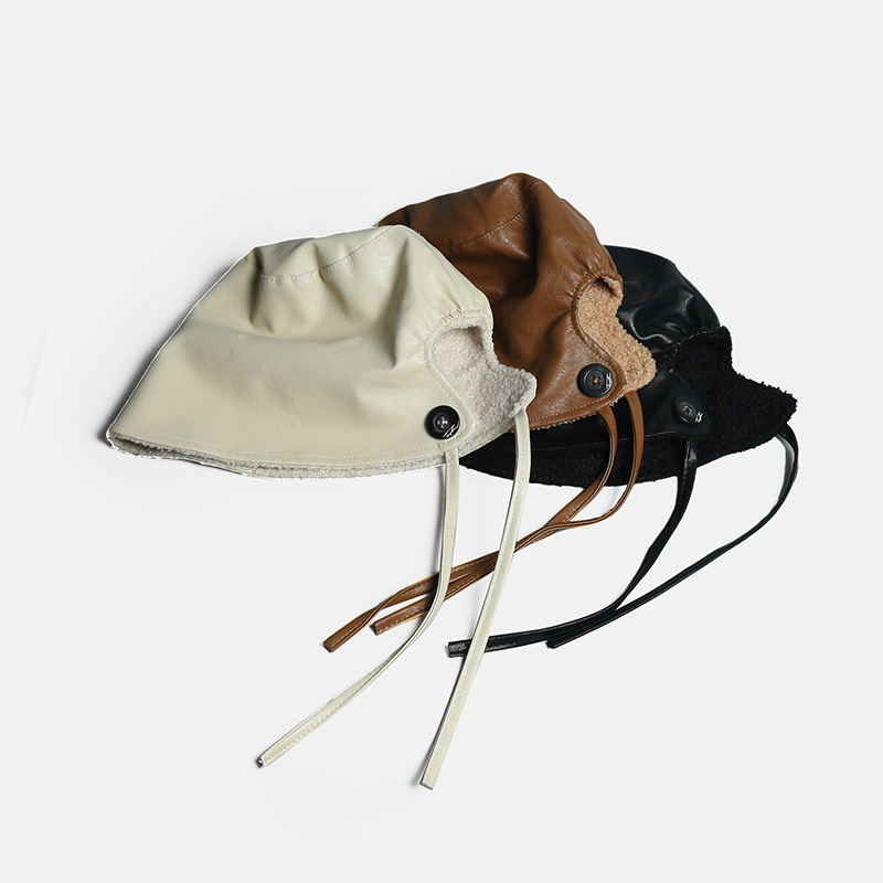 pu皮护耳渔夫帽子男女时尚加绒百搭渔夫帽冬季保暖防寒防风帽子
