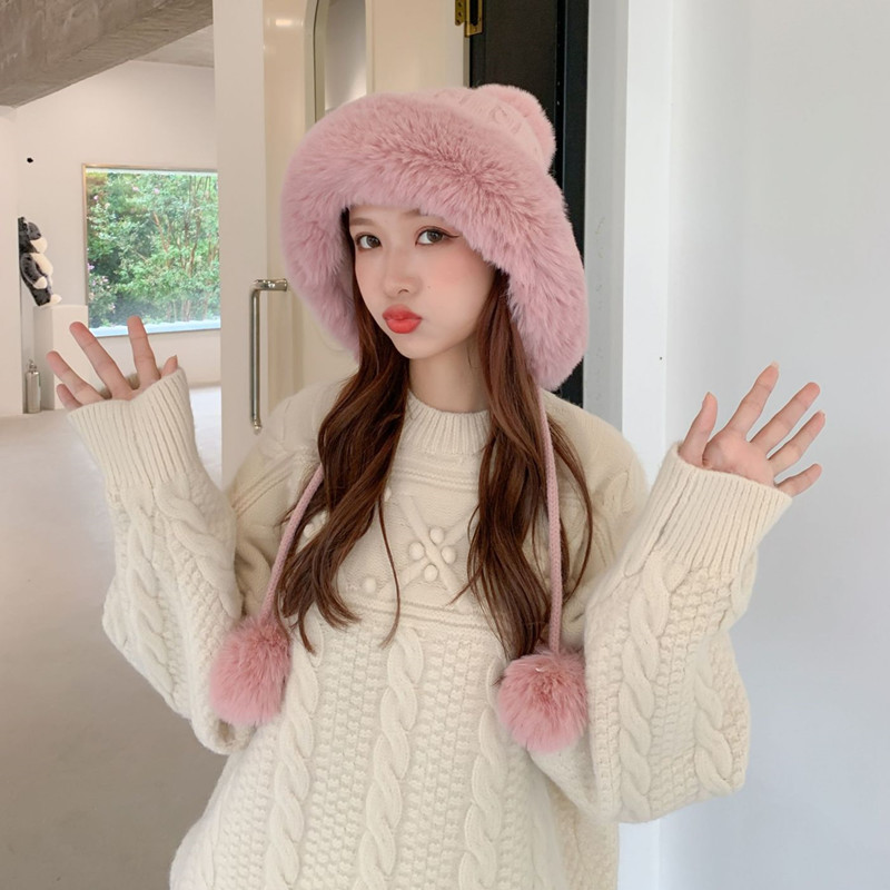 2021女冬季新款韩版潮时尚加绒加厚保暖套头护耳帽三球毛绒针织帽