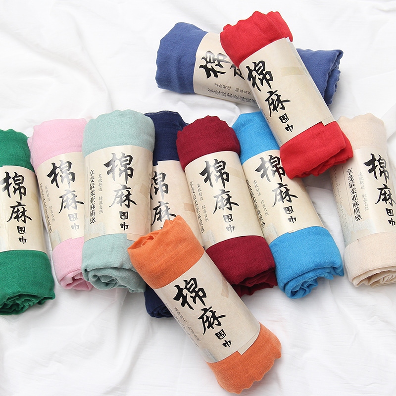 巴厘纱棉麻围巾女民族风围巾披肩礼品地摊热卖单色丝巾赠品批发