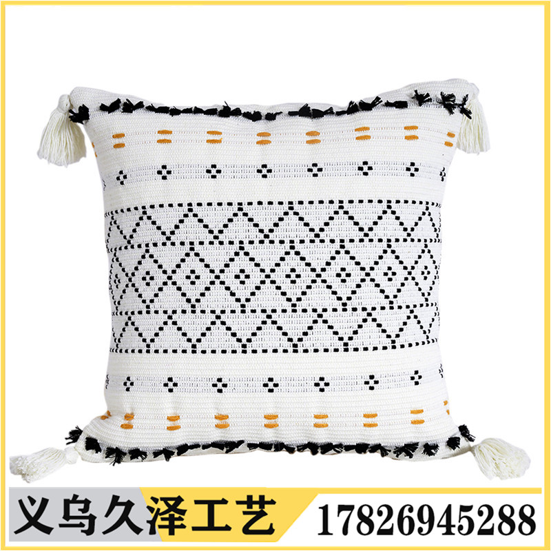 INS北欧针织棉线几何剪花流苏抱枕套沙发靠垫