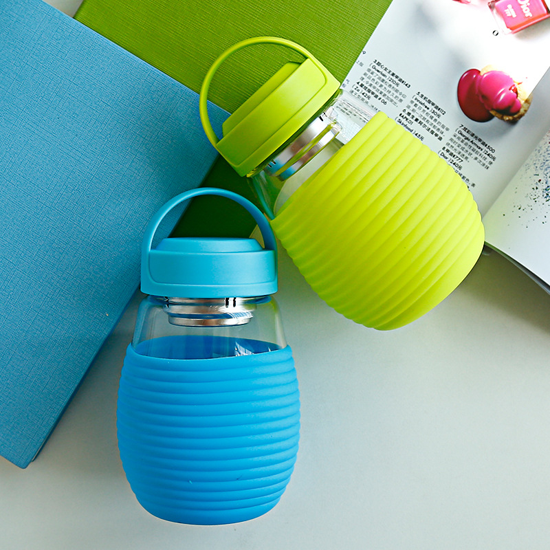 陶煲王 可爱萌杯 便携手提玻璃水杯 带PP防烫杯套 夏季情侣杯现货