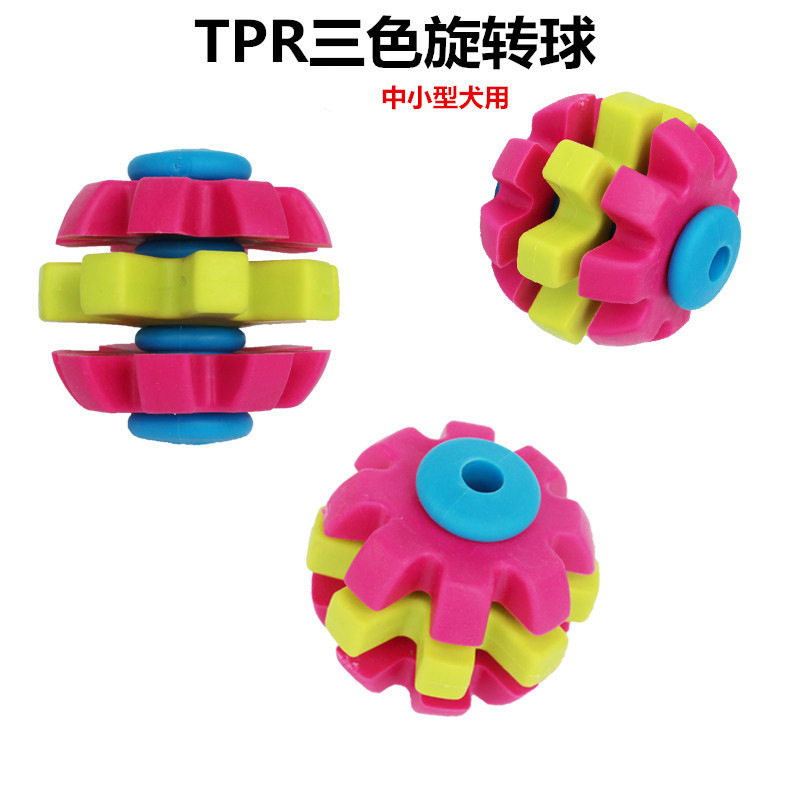 宠物玩具 TPR三色旋转球 狗狗啃咬玩具 橡胶齿轮球 厂家直销