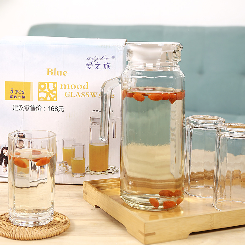 爱之旅活动 透明玻璃冷水壶五件套八角水具5件装玻璃杯套装礼品