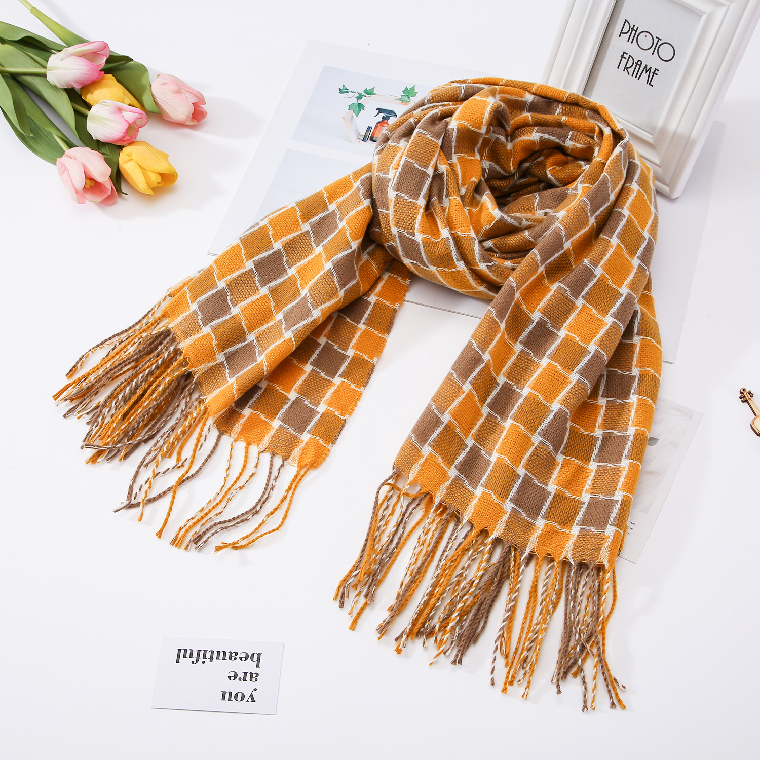 秋冬新款韩版仿羊绒格子围巾女加绒加厚披肩学生围脖