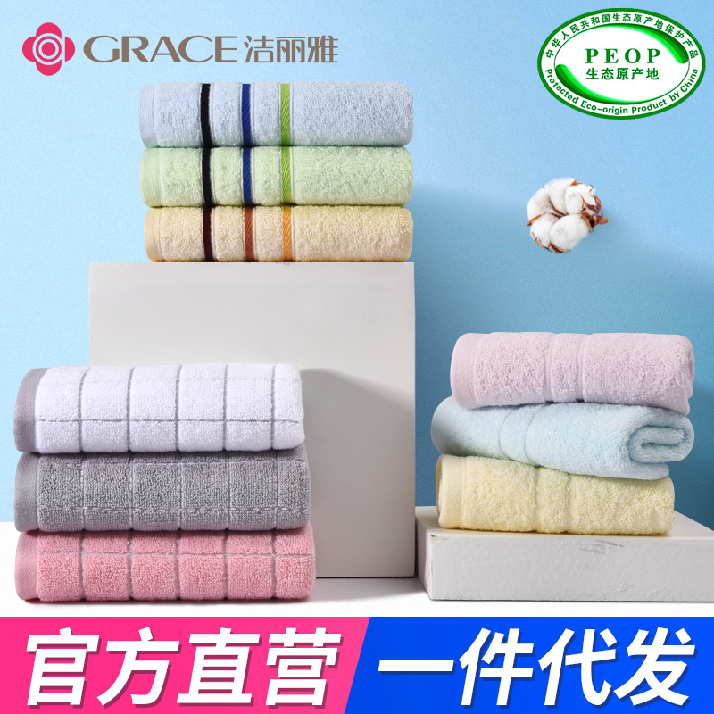 洁丽雅毛巾纯棉毛巾家居舒适吸水洗脸巾厂家直销logo刺绣毛巾批发