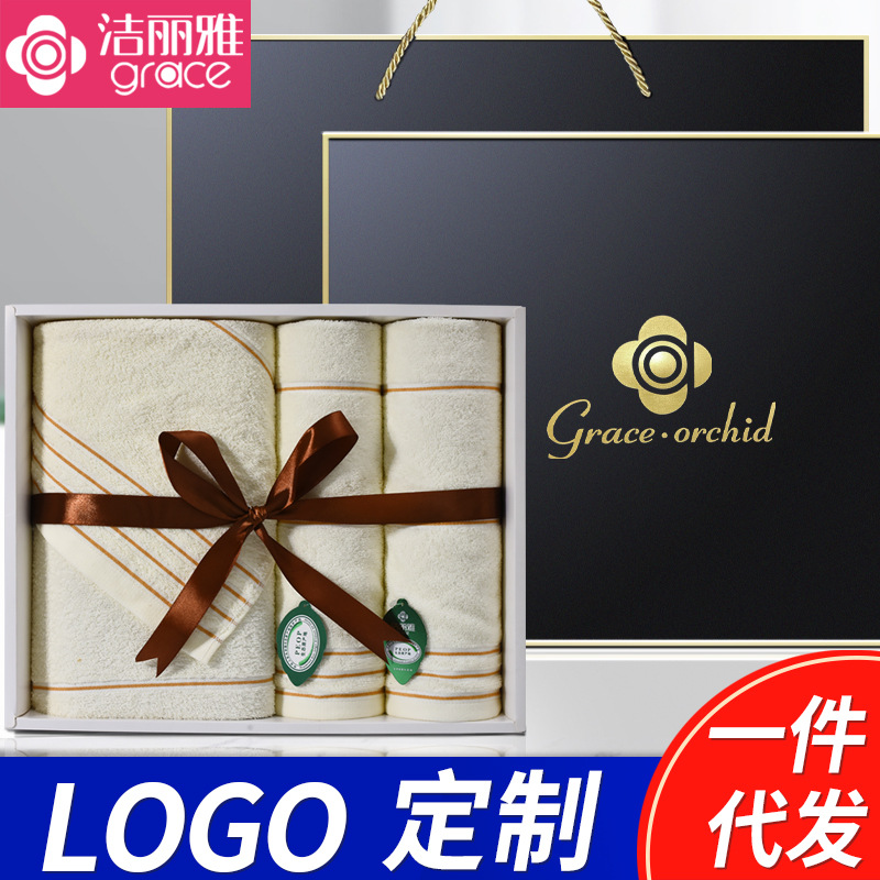 洁丽雅毛巾礼盒浴巾三件套纯棉柔软舒适毛巾刺绣logo厂家直销批发