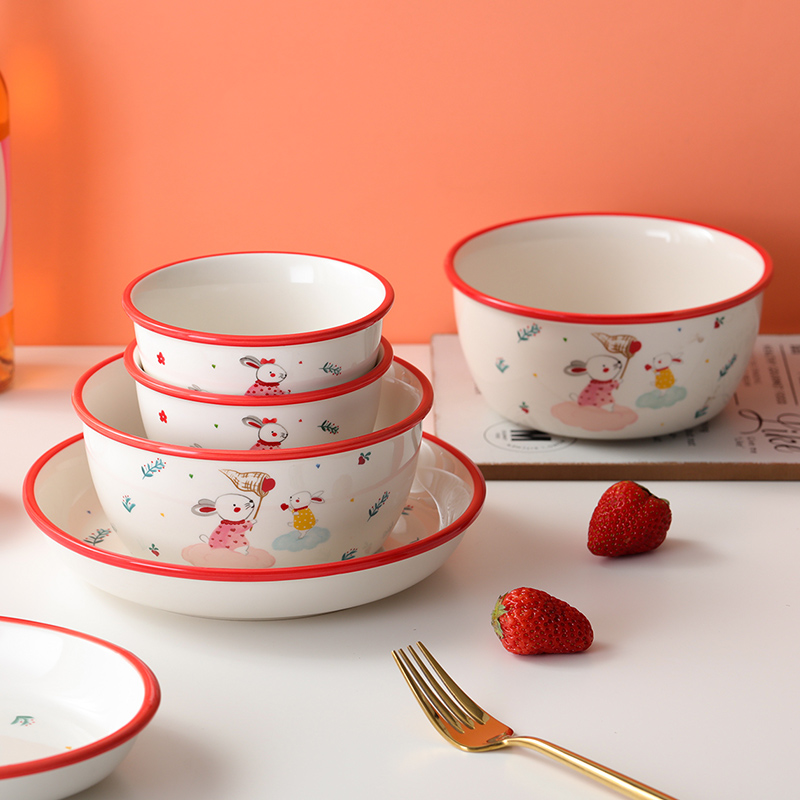 陶瓷可爱动物儿童卡通网红餐具碗碟套装早餐饭碗盘吃饭汤面碗家用