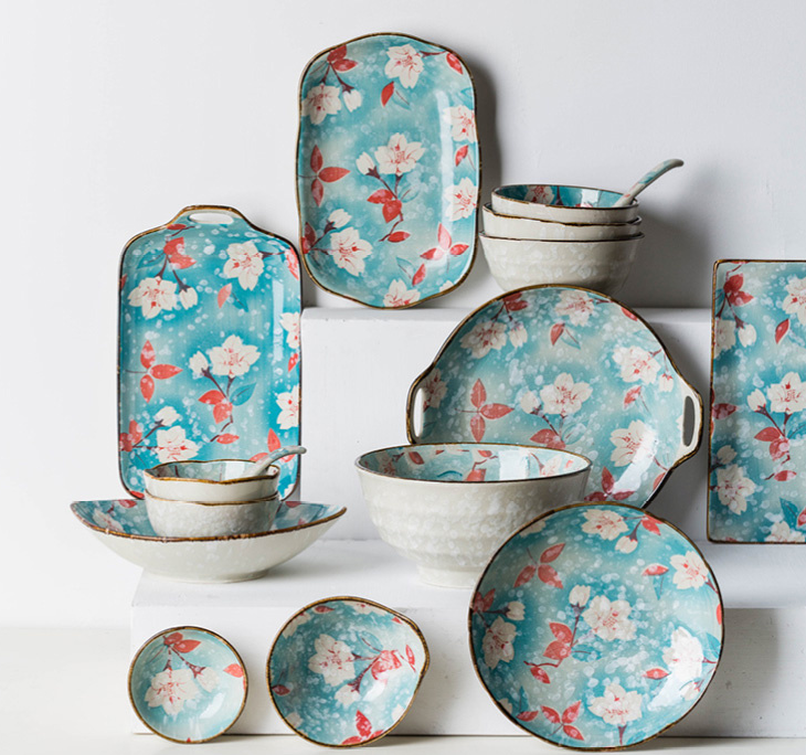 日式玉兰花系列陶瓷简约风餐碗盘子菜盘碟子碗碟餐盘鱼盘餐具批发