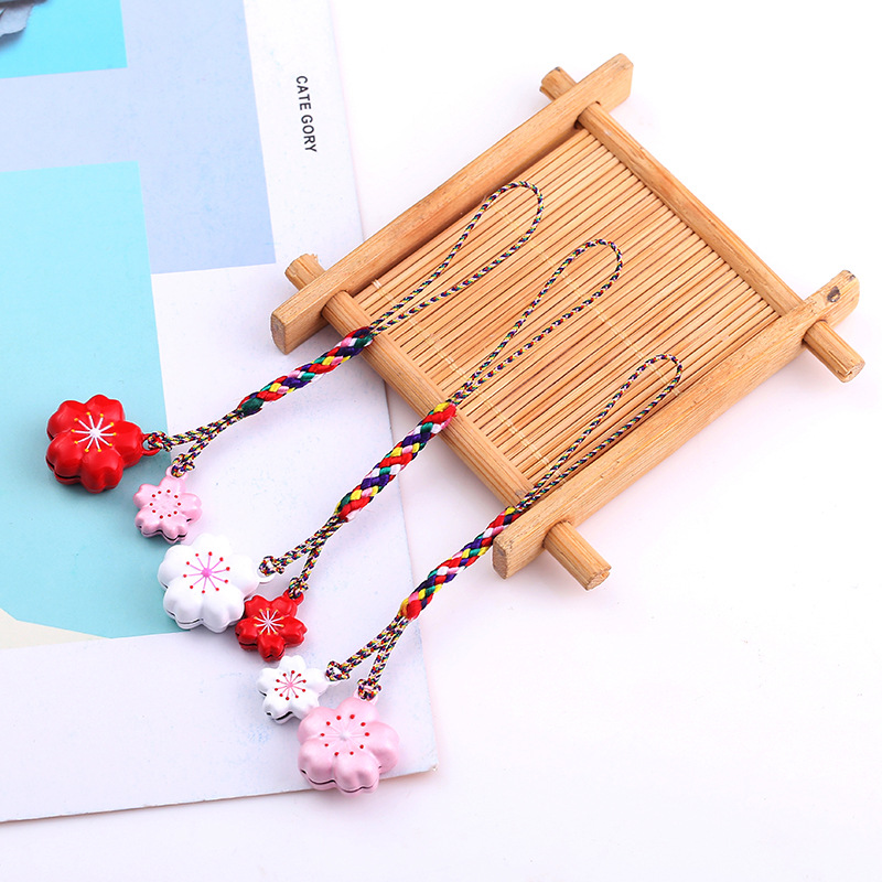 diy手机绳挂饰烤漆双面樱花铃铛铛 铜人造丝小号彩绳包包铃铛挂饰