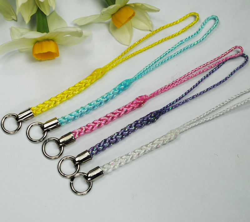五色手机挂绳棉绳涤纶线吊绳人造丝彩色绳镍加圈手机绳