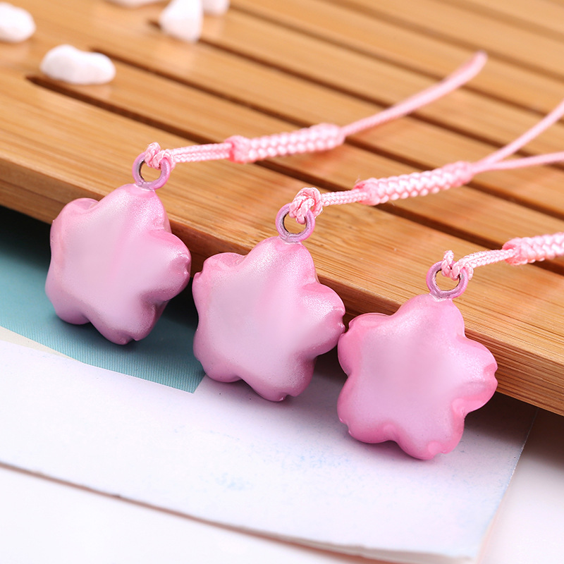 日式梦幻粉色铃铛 铜人造丝手机绳小号彩绳烤漆包包樱花挂饰礼品