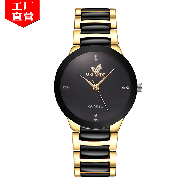新款跨境直供间金合金钢带手表 8钻刻度仿钨钢陶瓷跨境石英表批发