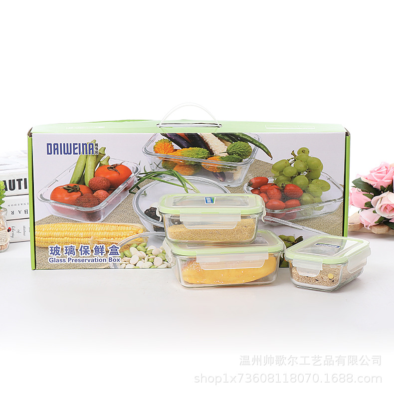 长方形带盖 玻璃保鲜碗 广告促销礼品保鲜盒套装 批发