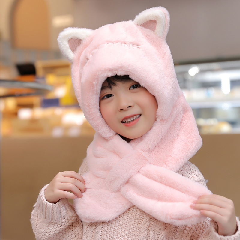 儿童帽子围巾一体秋冬两件套保暖可爱加厚宝宝帽男女童冬天护耳帽