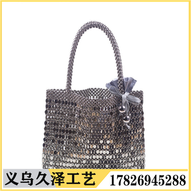 新款大容量女复古百搭亚克力手工串珠手提单肩包