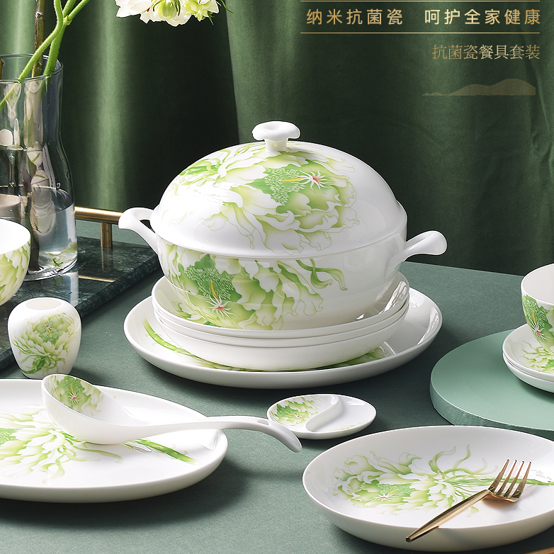 华光国瓷 抗菌抑菌骨瓷餐具 高温釉中彩 碗碟盘勺套装 春色满园