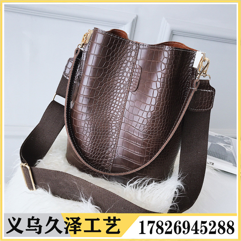 新款鳄鱼纹单肩水桶包大容量百搭宽带斜挎包