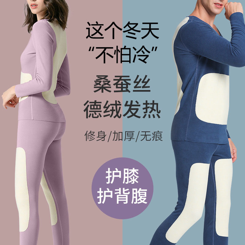 无痕保暖内衣加绒加厚德绒自发热冬季防寒打底秋衣修身男女套装