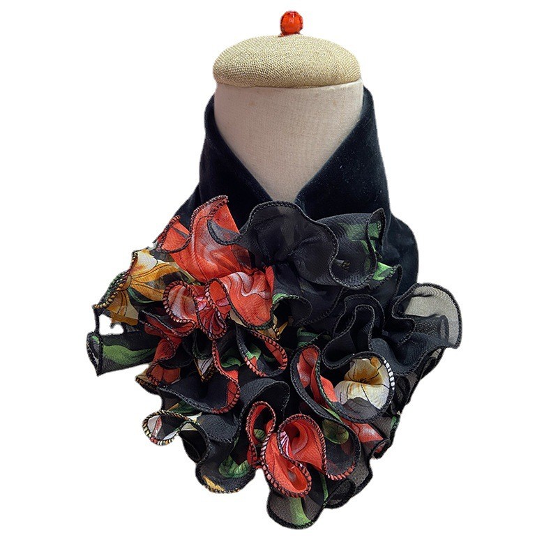 加绒加厚围脖女领花秋冬百变脖套2022新款时尚网红同款护颈假领子