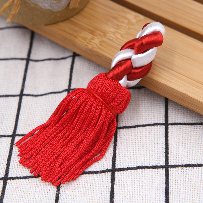 跨境日式寺庙手工人造丝红/白麻花绳流苏吊穗花边窗帘装饰现货