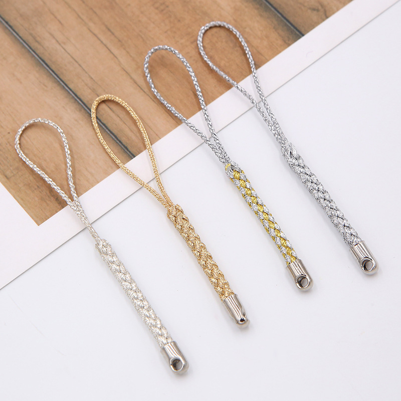 日式根付纽白K复古无圈人造丝双线 金属头手机挂件手机金银色挂绳