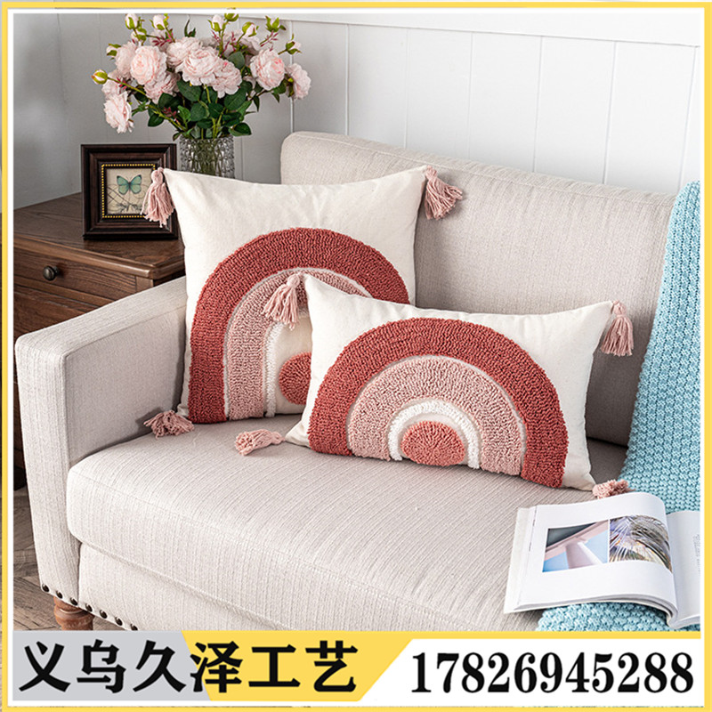 新款波西米亚风摩洛哥簇绒抱枕套ins风圈绒靠垫套