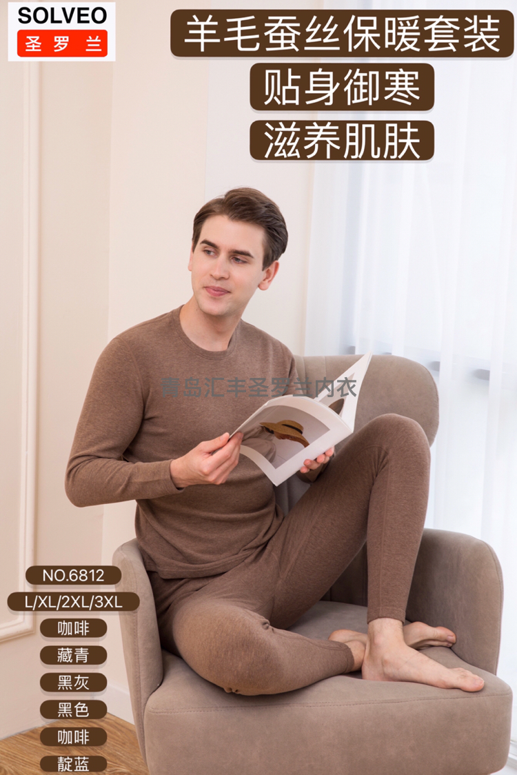 羊毛蚕丝亲肤保暖双重呵护随圆领 包边圆领 男士套装