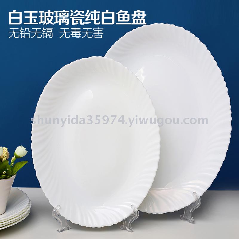 LHYP120-140白色白玉瓷钢化玻璃鱼盘