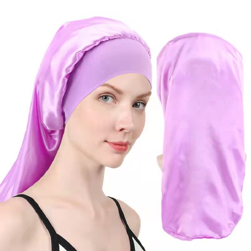 亚马逊跨境电商速卖通爆款色丁长筒型睡眠高弹力宽边护发帽批发