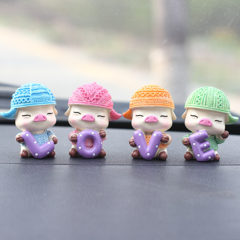 网红新款迷你小猪工艺品 创意汽车内饰用品LOVE彩色可爱小猪摆件