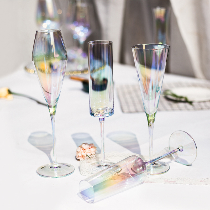 北欧轻奢彩虹色无铅水晶香槟杯鸡尾酒杯红酒杯子家用起泡酒杯