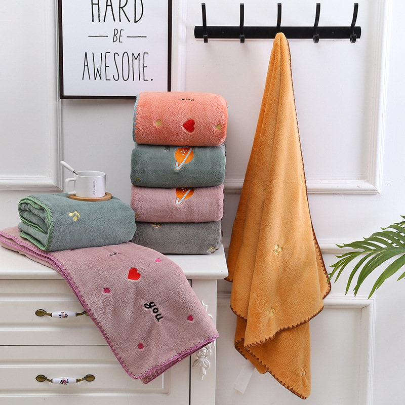 彩星厂家直销日系风高档绣花珊瑚绒浴巾柔软吸水礼品