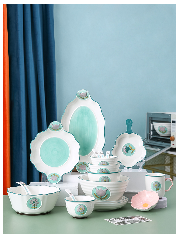 锦上添花家用餐具套装碗碟菜盘面碗创意陶瓷碗筷杯子盘子