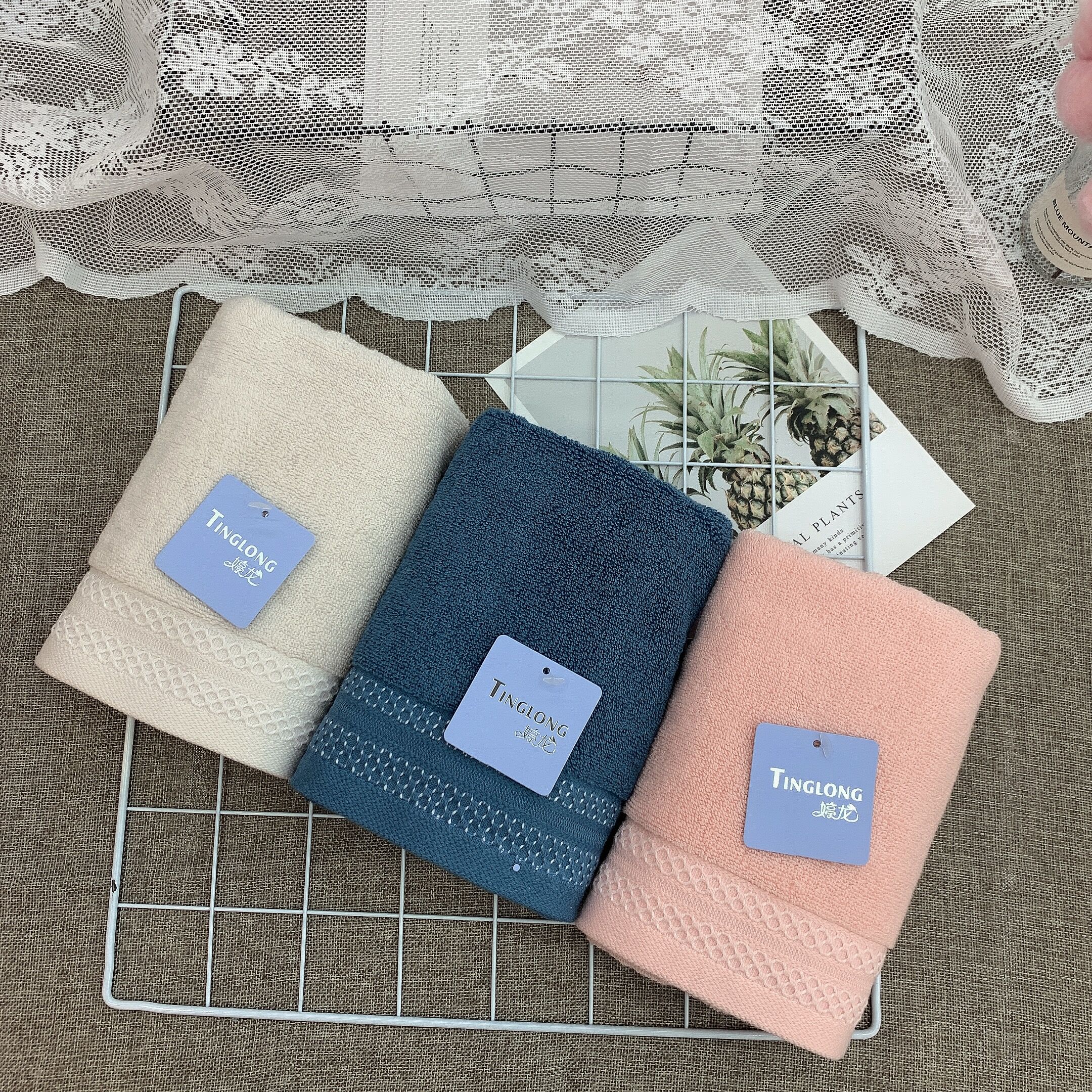 婷龙深色花边纯棉毛巾素色简约毛巾