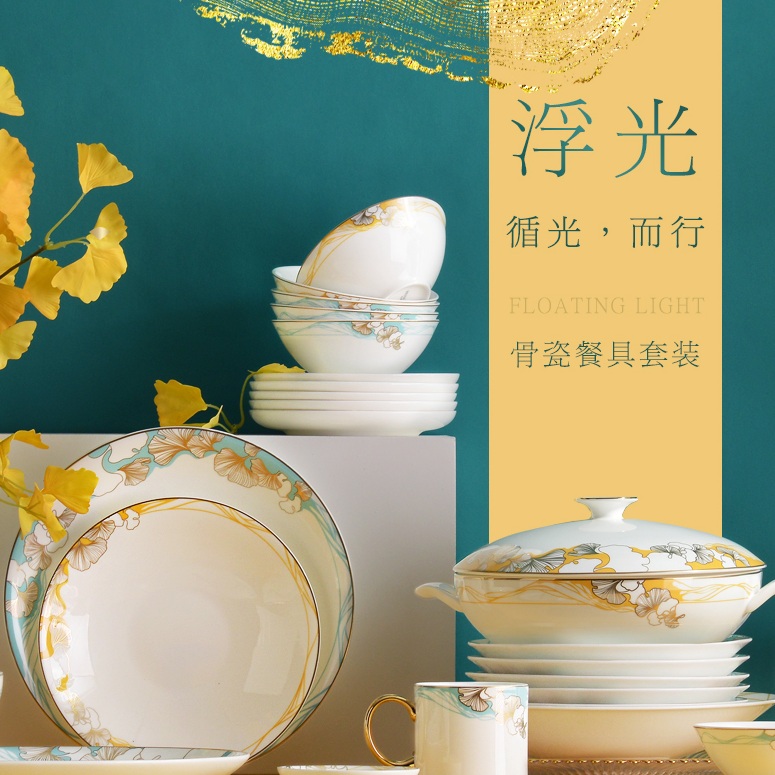 华光国瓷轻奢骨瓷餐具套装碗碟套装家用简约高档 高温无铅釉 浮光