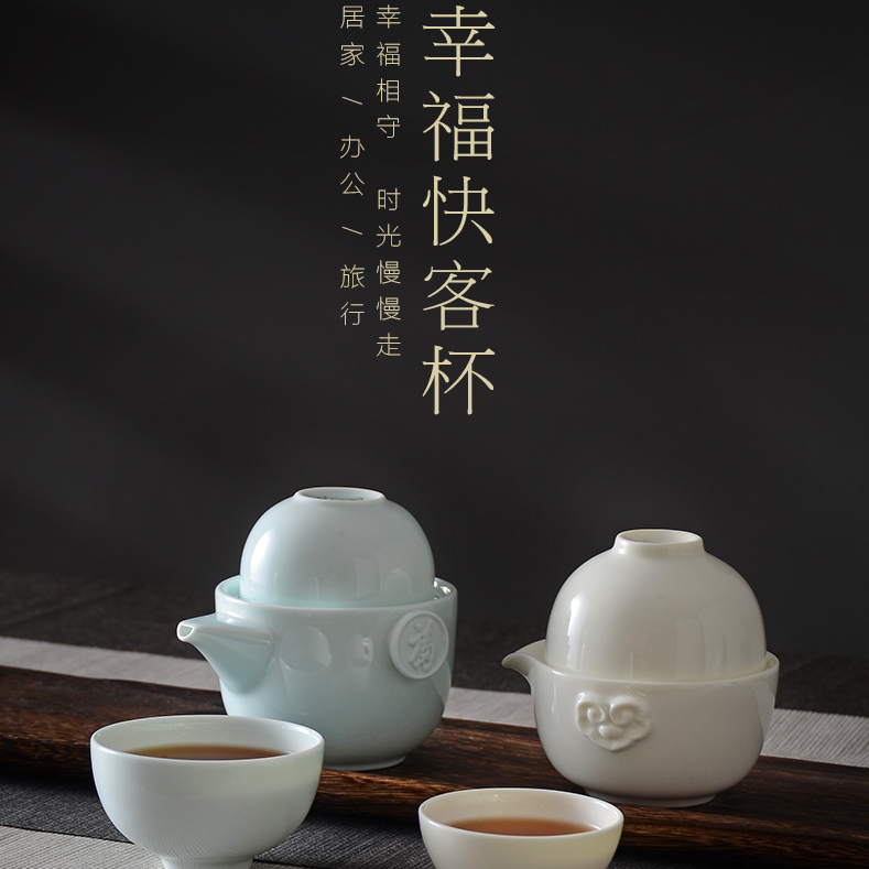 华光陶瓷快客杯一壶二杯户外旅行便携式套装茶具骨瓷家用送礼幸福