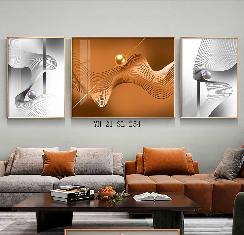 客厅装饰画沙发背景墙三联画现代简约大气晶体画墙画壁画轻奢挂画