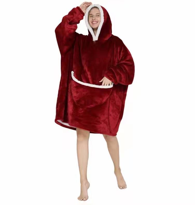 民鹏新款懒人TV连帽套头卫衣睡衣家居服法兰绒羊羔绒双层睡袍加厚