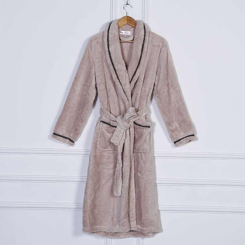 秋冬加厚舒棉绒浴袍法兰绒珊瑚绒睡衣睡袍家居服配边翻领浴袍