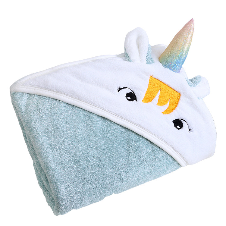 义乌好货卡通珊瑚绒吸水儿童浴巾可爱连帽新生儿抱被婴儿斗篷浴巾