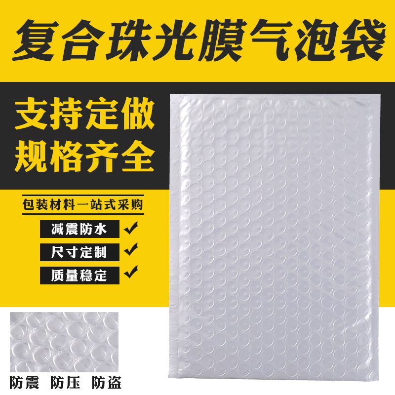 白色珠光膜气泡信封袋复合加厚泡沫包装袋印花批发防震快递气泡袋