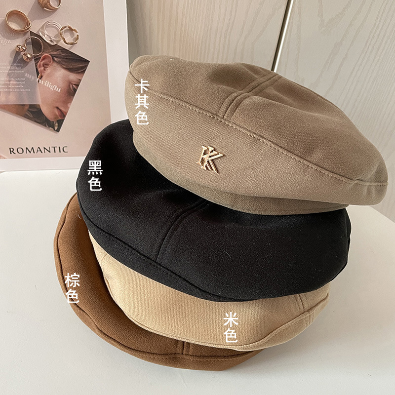 柔软太空棉时尚KK标贝雷帽女春秋韩版纯色画家帽日系青年帽子批发